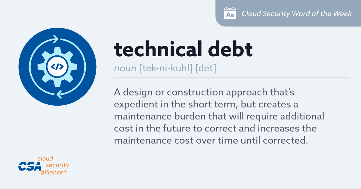 Technical Debt refers to quick design or construction choices that save time initially but lead to increased maintenance costs and effort over time. Understanding this concept is crucial for managing long-term efficiency and security in cloud environments.