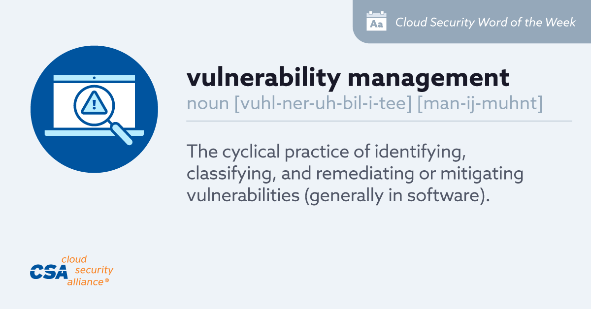 Vulnerability Management is the ongoing process of identifying, classifying, and addressing vulnerabilities, typically in software. It’s a critical practice for maintaining secure and resilient cloud environments.
