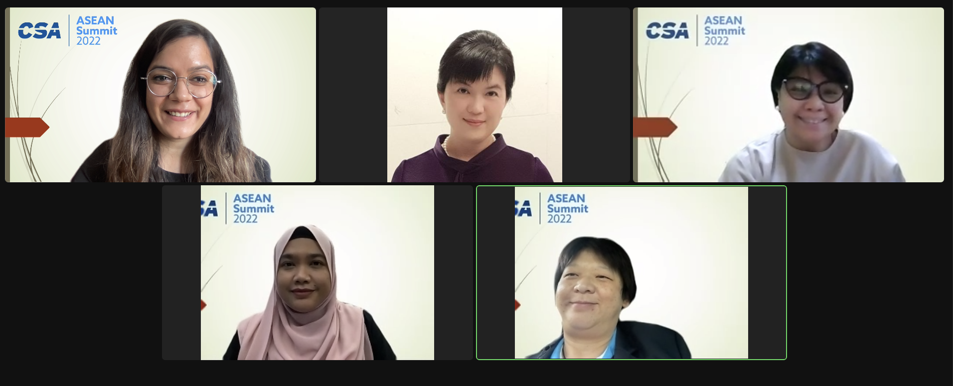 The panel discussion on "Women in Cloud Security" was moderated by Ekta MISHRA (APAC Membership Director & Country Manager India, CSA). She was joined by panelists like Dr. Nantawan WONGKACHONKITTI (CIO/Deputy Manager, Thailand Student Loan Fund, Thailand), Stephanie King-Chung HUNG (SVP Cloud Business, Mission Software & Services, Digital Systems, ST Engineering, Singapore), Mel MIGRINO (VP & CISO Meralco, Philippines) & Khardijah Abdul RAHMAN (Chair, CSA Malaysia Chapter). A recording of this discussion can be found at https://www.csaapac.org/csaaseansummit2022.html.