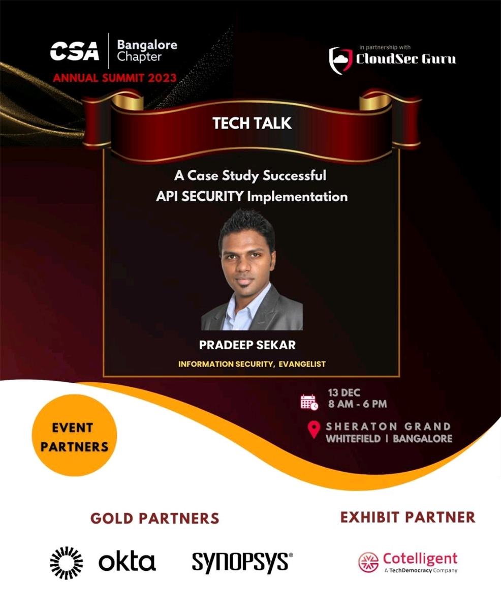Learn best-in-class implementation of a top-notch API security system, ensuring the protection of your data and seamless experience directly from industry expert. Join us at the CSA Bangalore Annual Summit 2023!