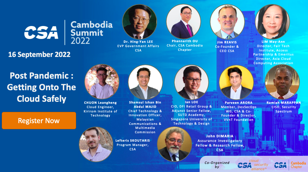 7 more days to go! This year's CSA Cambodia Summit will be held on 16 September. The summit has the theme of "Post Pandemic: Getting onto the Cloud Safely. You can find the program & registration links at: https://www.csaapac.org/csacambodiavsummit2022.html.