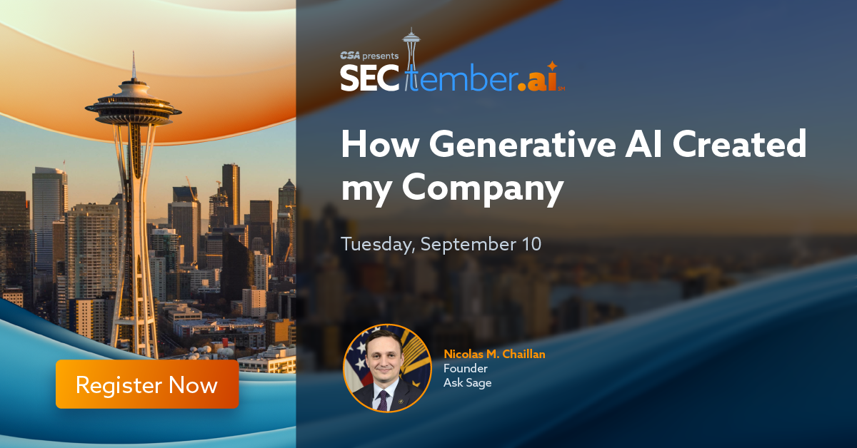 Discover how Generative AI can build a company from the ground up! Join Nicolas Chaillan, founder of Ask Sage, Inc., at SECtember.ai as he shares how AI transformed every aspect of his business, from coding to cybersecurity and beyond.