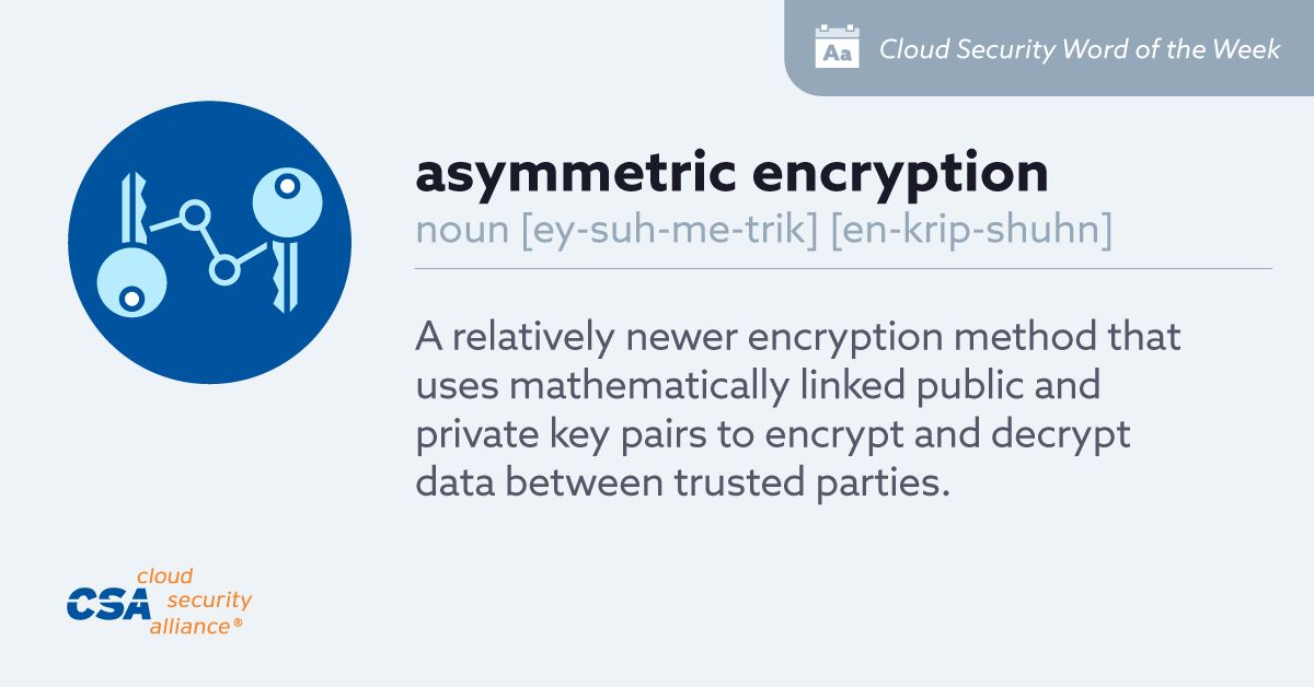 This week's Word of the Week is: Asymmetric Encryption! Asymmetric Encryption is a relatively new encryption method that uses mathematically linked public and private key pairs to encrypt and decrypt data between trusted parties.