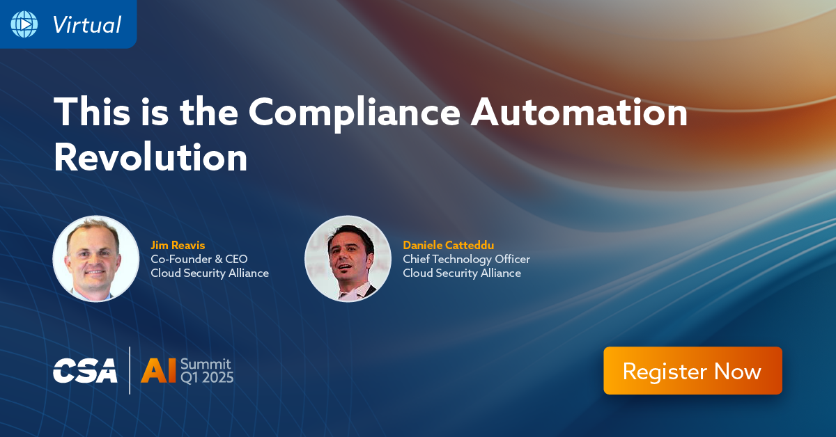 Join CSA’s AI Summit for a groundbreaking panel discussion on transforming compliance and assurance. Explore how automation, regulatory harmonization, and real-time information exchanges can tackle challenges like data sprawl and Generative AI.