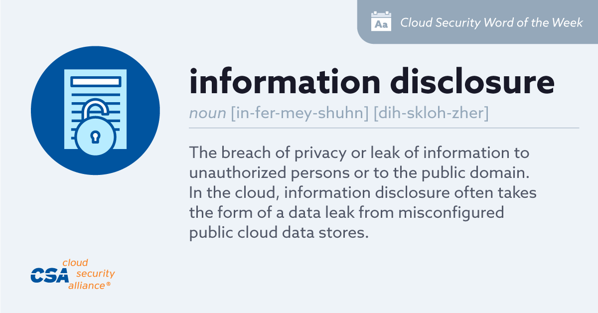 Information disclosure happens when sensitive data is exposed to unauthorized individuals—intentionally or by accident. In cloud environments, even small leaks can lead to major breaches, making it vital to manage access and visibility carefully.