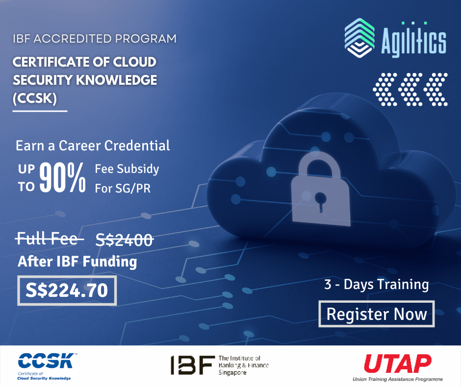 We are pleased to share that authorised CCSK training partner, Agilitics, has scheduled a series of CCSK Plus training in 2022. Qualified Singapore citizens & PRs are eligible for IBF training fee subsidy. Please register at: